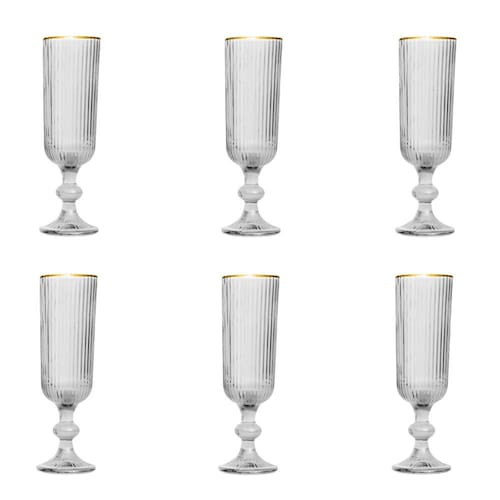 Apresentamos o Jogo de 6 Taças para Champanhe em Cristal com Borda Dourada 160ml: