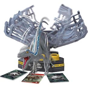 "Jurassic World Cage Breaker é um jogo cheio de emoção e entusiasmo! Você consegue resgatar o Velociraptor da gaiola com segurança? Ganhar ou perder o jogo depende da carta que você escolher…!