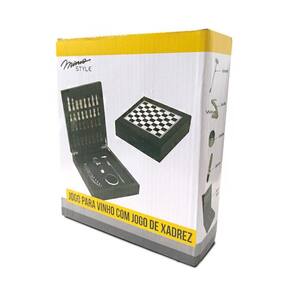 Conjunto com embalagem em formato de quadrado com um jogo de xadrez para se divertir enquanto aprecia seu vinho. Essa caixa acompanha acessórios para vinho da Mimo Style que trás os produtos exclusivos para servir os convidados com facilidade e impressionar ao mesmo tempo.
