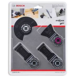 Jogo de acessórios para multicortadora para instalação de piso 4 peças Todas as ferramentas elétricas Starlock, Starlock Plus e Starlock Max e também as multicortadoras, são compatíveis com os acessórios. O sistema de fixação Starlock permite a rápida remoção e troca da lâmina em 3 segundos, sem precisar tocar na lâmina. O sistema de fixação produz a maior transferência de energia graças a uma ligação tridimensional apertada entre a máquina e o acessório.