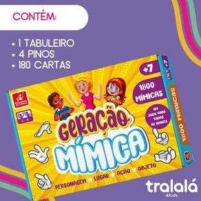 Jogo de Adinhação Mímicas Infantil Familia Brincadeira Geração Mímica é um jogo de pura diversão e criatividade que põe à prova a capacidade de comunicação sem palavras Ideal para todas as idades, este jogo desafia os jogadores a interpretar personagens, ações ou situações apenas com gestos e expressões corporais. A cada rodada, a equipa precisa de adivinhar o que está a ser representado antes do tempo acabar, garantindo momentos de muitas gargalhadas e emoção.