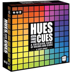 PRODUTO INTERNACIONAL. Hues and Cues é um jogo divertido e vibrante de comunicação colorida que fará você se divertir muito! Desafie seus amigos a fazer conexões entre cores e palavras, usando apenas uma ou duas palavras, tentando adivinhar tonalidades específicas dentre as 480 cores do tabuleiro do jogo. Quanto mais precisos forem os palpites, mais pontos você ganha.