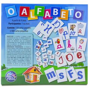 Um jogo que estimula a associação lógica e o aprendizado das letras. Objetivo: - Auxiliar a criança a traçar corretamente as letras do alfabeto maiúsculo e minúsculo. - Identificar as consoantes e as vogais. - Identificar que as consoantes acompanhadas das vogais formam as sílabas e estas as palavras. - Identificar as famílias silábicas. - Compor palavras. Participantes: 1 ou mais. Contém: 119 cartas grandes e 480 cartas pequenas. Tamanho aproximado da embalagem: 23 x 21,5 x 05 cm. Recomendado para crianças maiores de 4 anos.