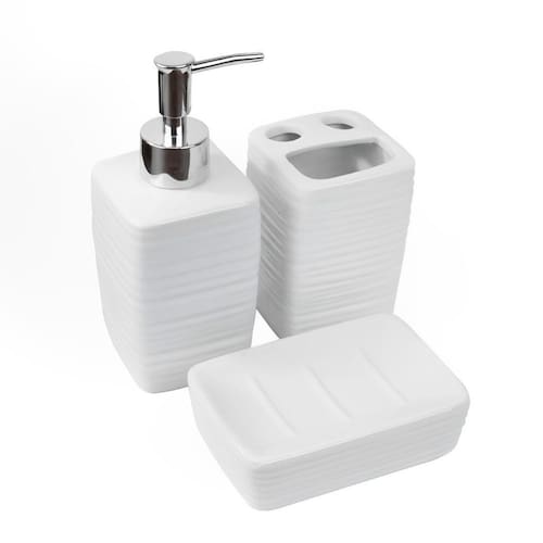 O toque que faltava na decoração do seu banheiro. O Jogo possui três peças confeccionadas em cerâmica com design diferencial na peça trabalhada.