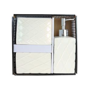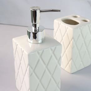O toque que faltava na decoração do seu banheiro. O jogo possui três peças confeccionadas em cerâmica com design diferencial na peça trabalhada.