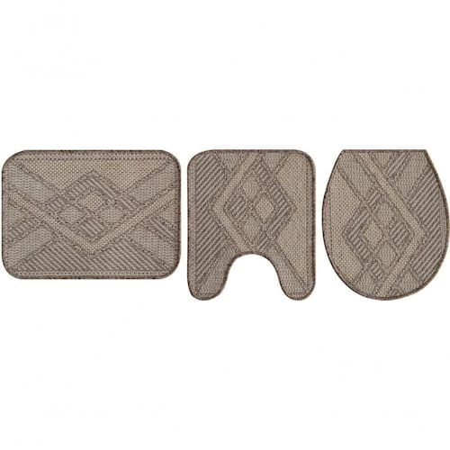 Ficha Técnica Informações técnicas para esse produto Produto Jogo de Banheiro Natural Look Qualidade Sisal Jacquard Densidade 320 pontos/m Batidas 550 linhas/m Pelos 352.000 Superfície 100% Polipropileno Poliseda Altura do Pelo Flatweave Medidas 1 peça 042x050 + 1 peça 042x050 + 1 peça 042x060 Base Antiderrapante *Fotos ilustrativas. Variações de cores podem acontecer em diferentes aparelhos/equipamentos. Contraste e brilho são configurados de forma diferente em cada marca de smartphone, monitor e televisão.