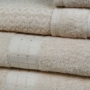 CLASS JOGO DE 5 PEÇASÉ produzido com fios penteados extra finos e duplos com fibras longas 100% algodão. Associado a um processo de tinturaria da mais alta tecnologia, esse tipo de fio resulta em um produto de extrema maciez e toque sedoso com grande capacidade de absorção e durabilidade. Irá lhe proporcionar uma maravilhosa experiência de conforto.Os Jogos de Banho Class são produzidos em cores neutras, corpo liso e uma linda barra decorativa em estilo clássico.Quantidade de Peças e Medidas Aproximadas (Largura x Comprimento):2: Toalhas de banho de 80cm x 1,50m2: Toalhas de rosto de 50cm x 80cm1: Toalha para pés (piso) de 50cm x 70cmMaterial e Composição:Banho e Rosto: 100% Algodão gramatura 450 g/m2Piso: 100% Algodão gramatura 570 g/m2Informações Específicas:Toalha HipoalergênicaLavar antes de usar pela primeira vez para retirada de resíduos de fabricaçãoNão utilizar amaciantes nas primeiras lavadasNão usar alvejantesCores escuras devem ser lavadas separadamenteEvite lavar juntamente com tecidos abrasivos para evitar o surgimento de bolinhasInformações Gerais:Material visual ilustrativoPode haver alterações na tonalidade da cor da imagem do produto, devido a diferença de telas de visualização