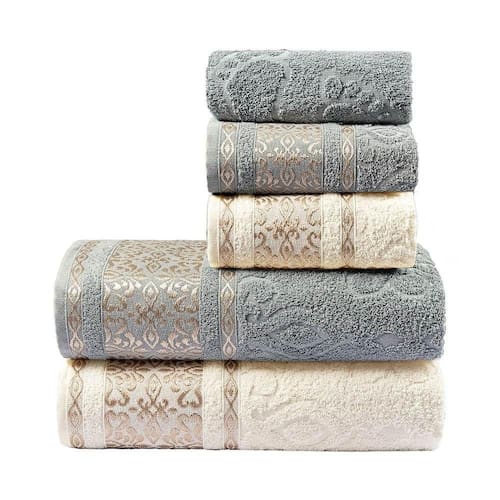 Jogo De Banho Essence Bordado Algodão 5 Peças - Granito/pérola
