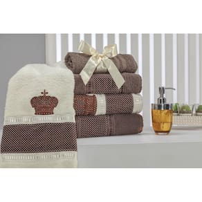 Jogo de Banho Nobre 5 Peças Contém na embalagem: 2 Toalhas de banho 1,40m x 70cm 2 Toalhas de rosto 70cm x 50cm 1 Toalha piso 70cm x 50cm Composição: Tecido: 100% Algodão Gramatura: 370g m² Marca: Não Informado