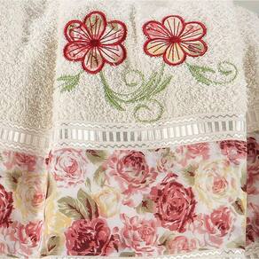 Jogo De Banho Passione Bordado Algodão 5 Peças Vermelho-palha - Bege