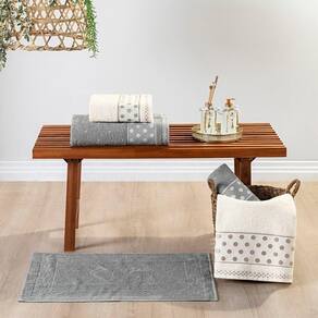 O Jogo de Banho Petit Poá é lindamente trabalhado em tecido 100% algodão, a gramatura 450gm2 conta com um padrão de desenho nas toalhas e um perfeito acabamento.