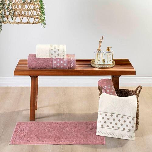 Jogo de Banho Petit Poa Algodão 5 Peças - Rosa Cha/Perola - Única