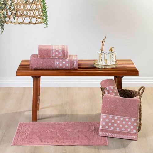 Jogo de Banho Petit Poa Algodão 5 Peças - Rosa Cha - Única
