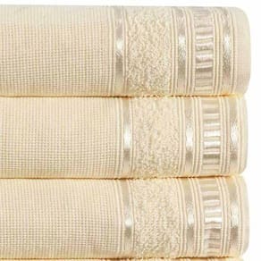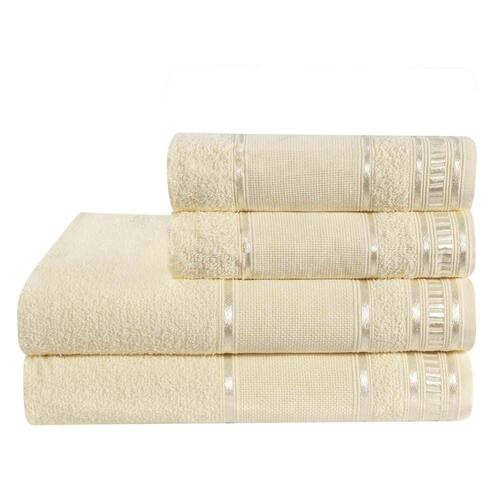 Desenvolvidas para inspirar sua criatividade, a Coleção Premium promete encantar Confeccionadas com Fio 100% Algodão, possui grande capacidade de absorção que associados a processos de tinturaria da mais lta tecnologia resultam em produtos com maciez e conforto. Suas cores variam de tons mais suaves a cores vibrantes de grande beleza. Jogo de Banho 04 Peças Toalhas possuem corpo todo liso Barra ideal para bordar e detalhes decorativos Gramatura de 285g/m² Tecido com toque macio e confortável Confeccionado em tecido 100% Algodão Contém na Embalagem: 02 Toalhas de Banho Decoradas 1,25m x 0,65m 02 Toalhas de Rosto Decoradas 0,45m x 0,60m Características: Produto : Jogo de Toalhas de Banho Quantidade de Peças: 04 Gramatura: 285g/m² Acompanha Tapete: Não Marca: Dianelli