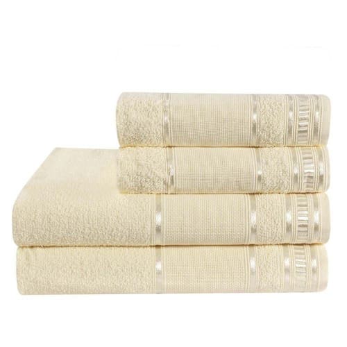 Desenvolvidas para inspirar sua criatividade, a Coleção Premium promete encantar Confeccionadas com Fio 100% Algodão, possui grande capacidade de absorção que associados a processos de tinturaria da mais lta tecnologia resultam em produtos com maciez e conforto. Suas cores variam de tons mais suaves a cores vibrantes de grande beleza. Jogo de Banho 04 Peças Toalhas possuem corpo todo liso Barra ideal para bordar e detalhes decorativos Gramatura de 285g/m² Tecido com toque macio e confortável Confeccionado em tecido 100% Algodão Contém na Embalagem: 02 Toalhas de Banho Decoradas 1,25m x 0,65m 02 Toalhas de Rosto Decoradas 0,45m x 0,60m Características: Produto : Jogo de Toalhas de Banho Quantidade de Peças: 04 Gramatura: 285g/m² Acompanha Tapete: Não Marca: Dianelli Marca: Não Informado Ean: 7892085084876
