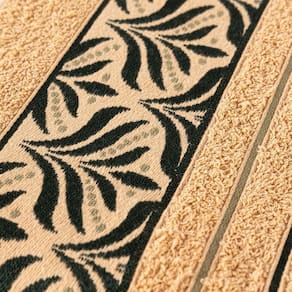 O desenho delicado que imita folhagem confere um charme especial a cada peça do nosso Kit Toalha Sintra. Cada detalhe foi cuidadosamente desenhado para trazer uma sensação de frescor e conexão com a natureza para o seu espaço de banho.