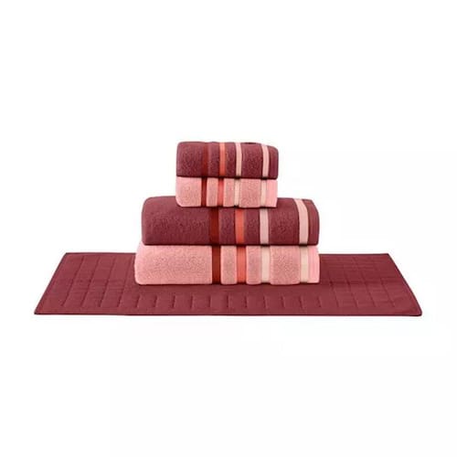 O jogo de banho é tão indispensável que se tornou parte da decoração do cômodo. Geralmente, o conjunto é formado por cinco peças, sendo duas toalhas de banho, duas de rosto e uma de piso. Assim, ele dispõe dos itens essenciais para completar o seu banheiro.