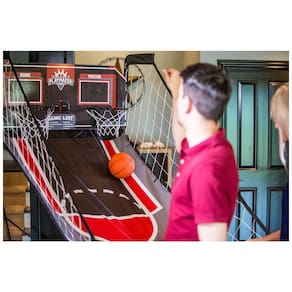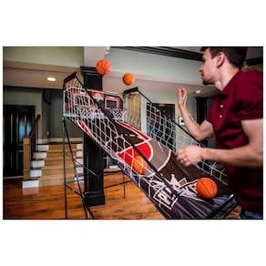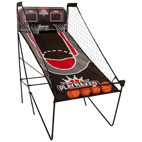 Chega de desconforto com instruções de montagem complicadas! O Jogo de Basquete Duplo Triumph Play Maker é fácil e rápido de montar, com construção de quadro Quick Connect que permite montar o aro em menos de 3 minutos! Possui 8 modos de jogo para diversão e competição sem fim. Inclui 4 bolas de basquete prontas para o jogo, bomba e agulha. Com aro de metal durável, placar eletrônico de LED, controle conveniente da base e estrutura dobrável para armazenamento fácil. Dimensões: 95cm x 109cm x 206cm. Comece a jogar agora mesmo com o Triumph Play Maker! Marca: Não Informado