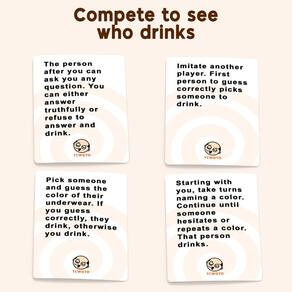 As regras são simples: mova-se no sentido horário, reveze-se desenhando do baralho e lendo cada carta em voz alta. Siga as instruções em cada cartão para determinar quem tem que beber. Prepare-se para competir, votar e lixar seus amigos neste divertido e hilário jogo de bebida. Feliz bebida!
