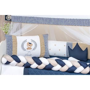 Com zíper nas laterais e cabeceiras, esse jogo de berço facilita a lavagem e a troca das peças, garantindo praticidade para o dia a dia. Além disso, o design com estampa de ursinho ted na cor azul marinho traz um toque de fofura e encanto ao quarto do seu bebê.
