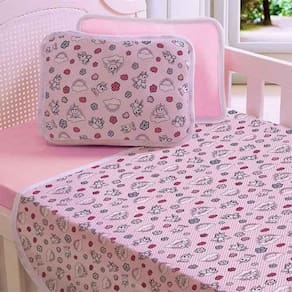 Fronhas e Sobre Lençol com acabamento em viés com estampas suaves e encantadoras.