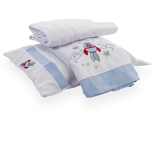 Confeccionado em tecido 100% algodão proporcionando qualidade e maciez. Roupa de cama feita de algodão é sempre muito confortável, durável e apta a resistir a todos os tipos de clima. Ideal para garantir conforto para o seu bebê! O kit conta com 3 peças sendo fronha e lençol com vira com motivos bordados e lençol liso com elástico. Perfeito para deixar o cantinho do seu bebê ainda mais lindo e aconchegante. Foto meramente ilustrativa.