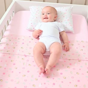 Características: - Contém 03 Peças - 01 Fronha: 28 cm x 40 cm - 01 Lençol com Elástico Liso: 70 cm x 1,30 m x 15 cm - 01 Lençol de Cima Estampado: 90 cm x 1,40 m - Tecido: 100% Algodão - Elástico nas Laterais - Ideal para Colchões de até 15 cm - Marca: Bublim