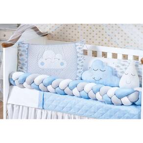 Jogo de Berço Menino 14 peças Nuvem Trança Capa Impermeável