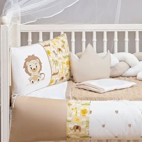 Jogo de Berço Menino e Menina 14p Leãozinho Lençol e Saia Total 14 Peças