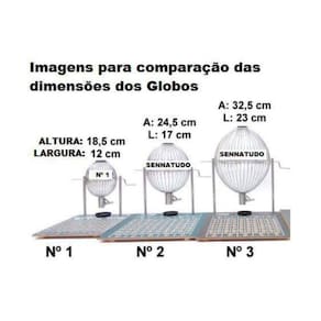 - Duas hastes de sustentação, com 25 cm de altura. - Tabuleiro tamanho Nº 3 (30cm x 44cm x 0,5 cm), - Feito com placa de fibra de madeira com a numeração (de 1 até 75) em silk-screen