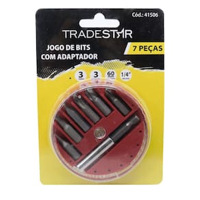 Jogo de Bits 7 Peças com Adaptador Magnético Tradestar O Jogo de Bits 7 Peças com Adaptador Magnético Tradestar é a escolha ideal para todas as suas necessidades de parafusamento. Fabricado em aço carbono de alta qualidade, oferece durabilidade e resistência excepcionais. Projetado para uso em parafusadeiras, esse jogo de bits possui hastes hexagonais que proporcionam um encaixe firme e seguro. Composto por 3 bits fenda, 3 bits Phillips e 1 adaptador, você terá todas as ferramentas necessárias para lidar com diferentes tipos de parafusos. O adaptador magnético de 60mm permite uma fixação segura dos bits, evitando quedas indesejadas durante o uso. Com o encaixe de 1/4, esse jogo de bits é compatível com uma ampla gama de parafusadeiras disponíveis no mercado. Compacto e conveniente, o Jogo de Bits 7 Peças com Adaptador Magnético Tradestar é fácil de transportar e armazenar. Tenha sempre à mão as ferramentas necessárias para qualquer projeto de parafusamento. Invista no Jogo de Bits 7 Peças com Adaptador Magnético Tradestar e desfrute de qualidade, durabilidade e praticidade em cada aplicação. Adquira agora mesmo e esteja preparado para lidar com diversos tipos de parafusos. 90 dias após a compra. Imagens meramente ilustrativas As tonalidades da cor do produto podem sofrer alterações de acordo com a tela que estiver usando para visualização. Marca: Não Informado Ean: 7908572101244