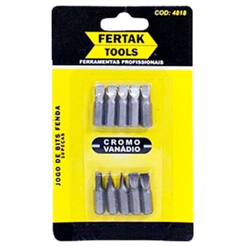 Jogo de bits fenda 10 peças cromo vanádio 25mm de comprimento - fertak
