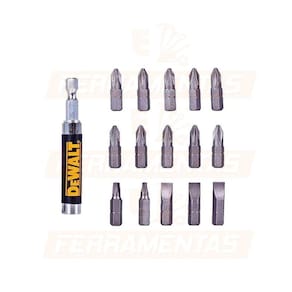 Dewalt 16 Peças : Jogo de 16 peças para parafusar com guia magnética advertência para reduzir o risco de lesões, sempre utilize proteção adequada para os olhos e para as vias respiratorias