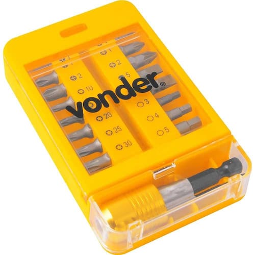 Jogo de bits/ponteiras com 15 peças encaixe sextavado 1/4" com engate rápido VONDER