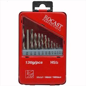 Jogo de Broca Haste Cilíndrica HSS DIN338N 1/16" a 1/4" 13 peças - Rocast 5,0158