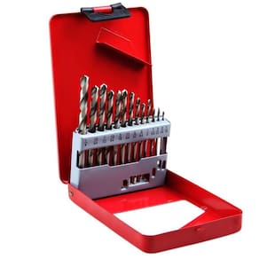 Jogo de Brocas Helicoidais com Haste Cilíndrica em Aço Rápido, DIN 338 N. Acabamento: brilhante. Aplicação: usinagem de aço com dureza até 45 HRC. Apresentação: estojo metálico ou blister. Descrição: Jogo com 13 Peças 1/16 a 1/4 Pol. Diâmetro das brocas (polegadas): 1/16 - 5/64 - 3/32 - 7/64 - 1/8 - 9/64 - 5/32 - 11/64 - 3/16 - 13/64 - 7/32 - 15/64 - 1/4.