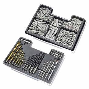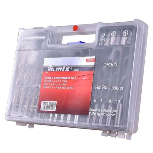 - Marca: MTX - Referencia: 725779 - Jogo compõe 300 peças - As Broca de concreto são feita de aço carbono com uma placa de metal duro feita de material VK8 - As brocas para metal são fabricadas em aço rápido HSS - As brocas para madeira são de aço-carbono - Bits de aço cromo vanádio. - Instrumentos embalados em caixa de plástico. Compõe o Jogo: - 5 Bocas para concreto: 4, 5, 6, 8 e 10 mm - 7 Brocas para metal: 2, 3, 4, 5, 6, 8 e 10 mm - 5 Brocas para madeira: 4, 5, 6, 8 e 10 mm - 1 Prolongador - 2 Bits fenda - 4 Bits phillips - 120 Buchas 4mm - 65 Buchas 5mm - 50 Buchas 6mm - 25 Buchas 8mm - 16 Buchas 10m - Peso bruto 600 gramas - Garantia: 90 dias de garantia Ean: 7899612724472