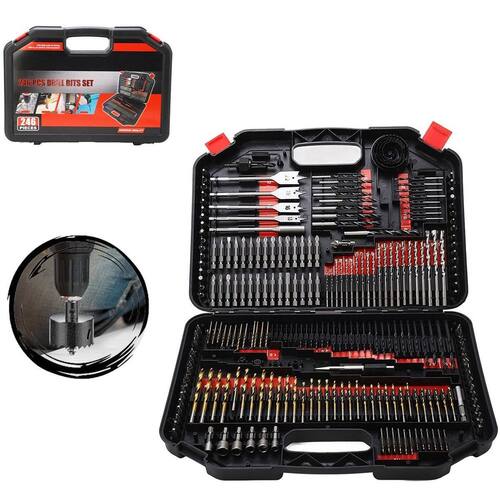 Quantidade: 246pcs lista de pacotes: 4 Brocas spade: 13, 16, 19, 22 mm 17 Brocas brad point: 3,0 4, 4,0 4, 5,0 3, 6,0 2, 7,0, 8,0 2, 10,0 mm