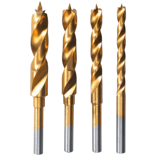 - As pontas de hélice cobertas de titânio permanecem no centro e começam a furar imediatamente. Para madeira.