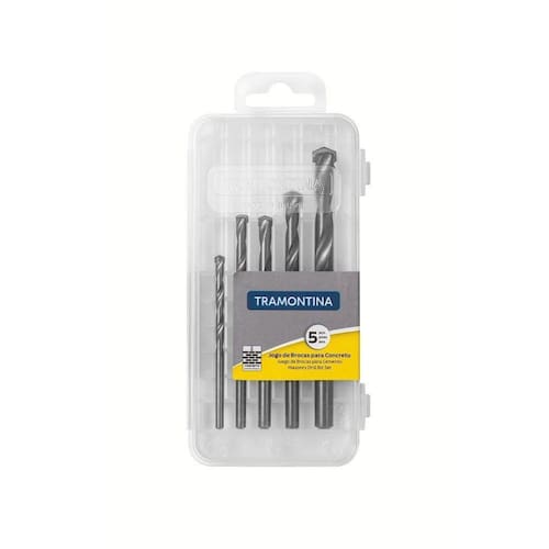 Jogo De Brocas Em Milímetros Para Concreto Tramontina 5 Peças Tramontina Jogo de Brocas em Milímetros para Concreto Tramontina 5 Peças Tramontina - O Jogo de Brocas para Concreto Tramontina 5 Peças garante um trabalho bem feito na perfuração do concreto. Levando resistência e durabilidade para seus projetos, as cinco brocas devem ser utilizadas com furadeiras de impacto no modo martelete. Possuem os tamanhos 4, 5, 6, 8, 10 mm. Características Gerais do Produto: Garantia: - Garantia total contra vícios ou defeitos de fabricação.