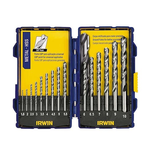 Jogo De Brocas Helicoidais Em Aço Rápido Hss Para Metal 15 peças IRWIN - Jogo de Brocas para Metal, fabricadas em aço rápido garantindo durabilidade e qualidade; - Possuem ângulo de afiação da ponta de 118º; - Corpos retificados para maior precisão; - Utilizadas para furar ferros e metais; - Acompanha estojo moldado em ABS de ótima resistência com dobradiças de metal durável e marcação das medidas facilitando a identificação das peças. Especificação Técnica - Diâmetro de Corte: 1,5 à 10mm; - Tipo de Fixação: Haste Cilíndrica; - Quantidade Peças: 15; - Material: HSS; - Aplicação: Metal; - Acabamento: Retificado; - Revestimento: Não; - nglo da Ponta: 118º; - Norma: Din 338; - Tipo de Canal: Helicoidal; - Tolerancia: H8; - Profundidade x Diâmetro: 8xD; - Direção Corte: Direito; - Modelo: 1865314; - Marca: IRWIN. Itens Inclusos 15 Brocas HSS Aço Rápido: 1,5mm - 2,0mm - 2,5mm - 3,0mm - 3,5mm - 4,0mm - 4,5mm - 5,0mm - 5,5mm - 6,0mm - 6,5mm - 7,0mm - 8,0mm - 9,0mm - 10,0mm Especificações Material: HSS Diâmetro Corte: 1,5 à 10mm Tipo Fixação: Haste Cilíndrica Quantidade Peças: 15 Aplicação: Metal Tipo Acabamento: Retificado Revestimento: Não Angulo da Ponta: 118º Norma: Din 338 Tipo Canal: Helicoidal Tolerância: H8 Profundidade x Diâmetro: 8xD Direção Corte: Direito