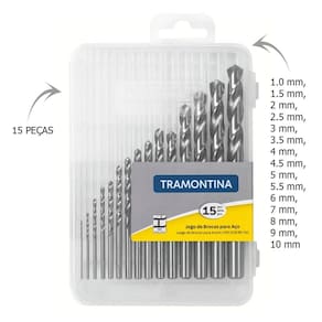 O Jogo de Brocas Para Aço 15 Peças Tramontina é a escolha ideal para quem busca precisão e eficiência em perfurações metálicas. Fabricadas em aço rápido polido e envernizado, estas brocas garantem durabilidade e alta performance em diferentes tipos de aço. Com medidas variadas, de 1.0 mm a 10 mm, este conjunto é perfeito para atender às mais diversas necessidades, desde trabalhos profissionais até pequenos reparos domésticos. Confie na qualidade e tradição da marca Tramontina para realizar suas tarefas com excelência.