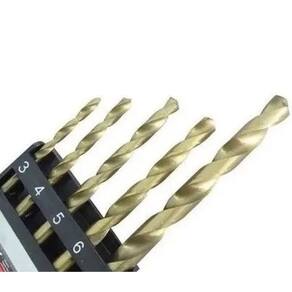 Modelo: 723839 Material das Brocas: Aço Rápido (HSS) Revestimento: Nitreto de Titânio (TiN) Tamanhos das Brocas: 3 mm, 4 mm, 5 mm, 6 mm e 8 mm Tipo de Haste: Sextavada (para melhor fixação no mandril) Dimensões do Estojo: 21 x 11 x 2 cm Peso Total: 420 g Aplicação: Perfuração em metais