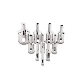 Kit contendo 10 serras copo diamantadas XF. Broca diamantada revestida fura um círculo completo de vidros, mármore, granito, espelhos, garrafas, pisos, azulejos e cerâmicas.