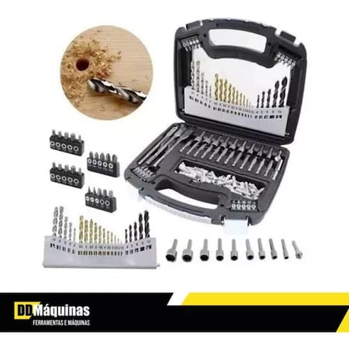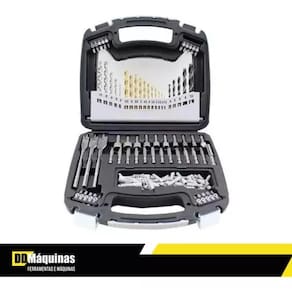 Kit de acessórios completo utilizado para furar aço, madeira e parede, acompanha bits mais utilizados no mercado utilizado para parafusar e remoção do mesmo, acompanha kits de serra copo já com o adaptador assim tornando o trabalho em madeira mais pratico e rápido.