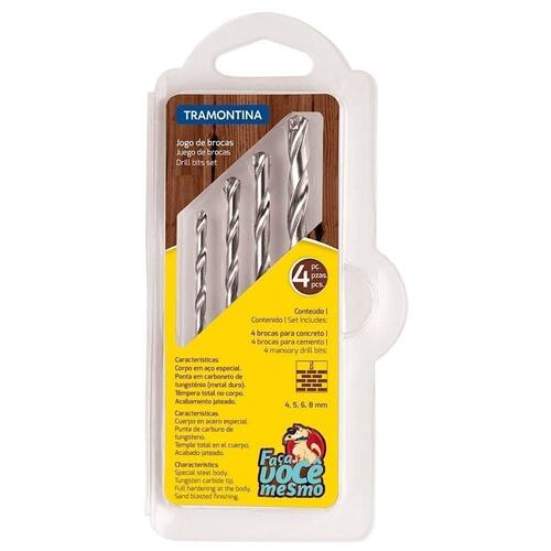 Orientações: Use óculos, luvas e outros equipamentos de proteção de acordo com a tarefa a ser executada. Mantenha ferramentas de corte longe do alcance de crianças. Mantenha o fio de corte protegido, pois ele é afiado e pode ferir o usuário Armazene em local limpo e seco. Conteúdo: brocas de 4, 5, 6 e 8 mm