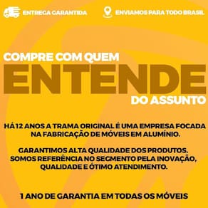 Nossos produtos são de altíssima qualidade e com design moderno, garantindo assim conforto e praticidade para seu bem-estar. Produzidos em estrutura de alumínio polido e revestida em fibra sintética. Possuem proteção UV, aumentando sua durabilidade contra ações do tempo. Ideais para decorar ambientes clássicos e modernos como: Cozinha, Sala, Quarto, Varanda, Edícula, Piscina, Jardim, Área de lazer, Festa, Reunião, Churrasco.