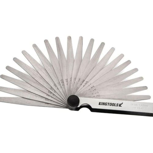 Jogo de Calibre de Folga com 17 Lâminas fabricado em aço Capacidade 0,02 Kingtools 600.020O Jogo de Calibre de Folga com 17 Lâminas fabricado em aço Capacidade 0,02 a 1mm comprimento 300mm Kingtools 600.020 foi desenvolvido em aço de alta resistência ao desgaste garantindo uma vida útil maior, proporcionando desempenho eficiente com excelente relação custobenefício. Ideal para quem necessita versatilidade de aplicação a um baixo custo. Fabricados em aço.Passo:0,02mm0,03mm0,04mm0,05mm0,06mm0,07mm0,08mm0,09mm0,10mm0,15mm0,20mm0,25mm0,30mm0,40mm0,50mm0,75mm1,00mmItens Opcionais Certificado de Calibração com rastreabilidade Inmetro/RBC,AtençãoA imagem aqui apresentada é meramente ilustrativa e foi fornecida pelo fabricante. Ela não reflete as dimensões reais do produto. Para decisão de compra considerar a descrição e especificação técnica do produto.
