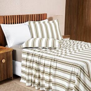 Jogo De Cama 100% Algodão Marin Casal Padrão 04 Peças - Caqui O Jogo de Cama Marin é uma escolha perfeita para quem busca conforto e qualidade. Feito com tecido de malha 100% ALGODÃO, fio 30/1 penteado, ele é resistente e não forma bolinhas com o tempo. As fronhas apresentam estampas em listras encantadoras, enquanto o lençol de baixo é liso e possui elástico em toda a volta, garantindo um ajuste perfeito ao colchão. Com o Jogo de Cama Marin, seu quarto terá um visual aconchegante e cheio de charme. O que vai na embalagem:01 Lençol de cima 2,50m x 2,20m01 Lençol de baixo c/ elástico p/ colchão de 1,88m x 1,38m x 30cm alt.02 Fronhas 70cm x 50cm Composição: Tecido Malha 100% Algodão - Fio 30/1 Penteado 135g/m2