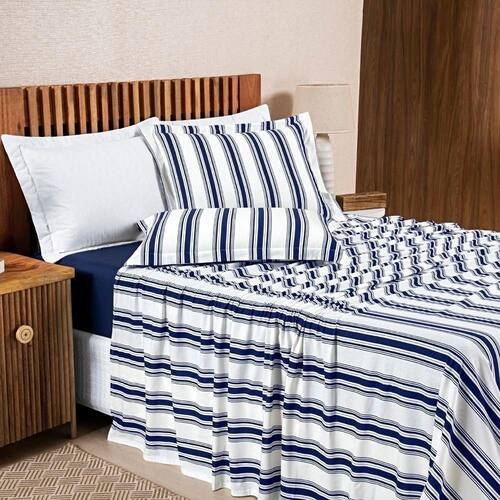 O Jogo de Cama Marin é uma escolha perfeita para quem busca conforto e qualidade. Feito com tecido de malha 100% ALGODÃO, fio 30/1 penteado, ele é resistente e não forma bolinhas com o tempo. As fronhas e o lençol de cima apresentam estampas em listras encantadoras, enquanto o lençol de baixo é liso e possui elástico em toda a volta, garantindo um ajuste perfeito ao colchão. Com o Jogo de Cama Marin, seu quarto terá um visual aconchegante e cheio de charme.